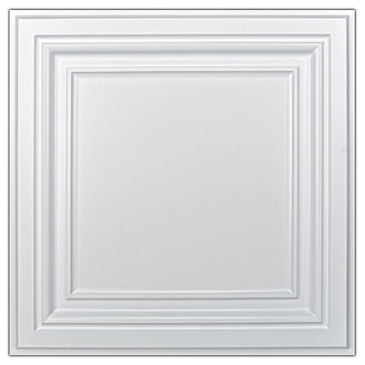 Create an accountThis drop-in ceiling tile set tops off your room with a vintage-inspired look. Crafted from PVC, these tiles are both water-resistant and fire-retardant, making them a practical choice for areas like kitchens, bathrooms, or basements. With a square edge style and molded details, they fit seamlessly into standard ceiling grids for a clean and modern finish. Each set includes 12 tiles, providing ample coverage for your space.