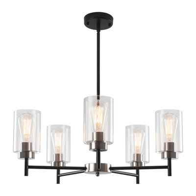 Create an accountCrafted from metal, comes with thickened clear glass shades, The matte black brushed finish light fixture creates a cozy and comfortable home atmosphere, and injects an airy modern twist on farmhouse design while lasting elegance. Beyond brightening your abode, these dining room light fixtures make a statement in any interior design without occupying valuable floor space. This simple and elegant design chandelier made with clear glass shade is widely used in indoor lighting and different styles of farmhouse, kitchen, dining room, foyer, entryway, living room, and loft. Also, this pendant light is equipped with an angle-adjustable ceiling canopy which could be mounted on vaulted or angled ceilings.
