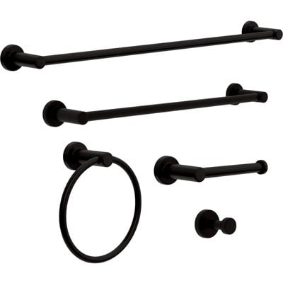 Create an accountThe product is a modern design with on-trend finishes. For a style upgrade and extra organization in the bathroom, opt for this 5-piece premium collection, featuring an 18-inch towel bar, 24-inch towel bar, toilet paper holder, pivoting towel ring, and a towel hook. With inspired designs and rich finishes, you will be enjoying this upgrade for years to come.