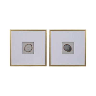 Create an accountEnhance your home decor with this stylish set of two framed canvas art pieces, featuring genuine agate stone accents in white, gold, and blue hues. Designed to complement modern, contemporary, or casual interiors, these 24x24-inch wall art pieces bring a sophisticated and elegant touch to any living room, bedroom, office, or entryway. The sleek gold frame and high-quality craftsmanship add a refined aesthetic, making them a perfect statement decor piece. The stunning agate slices create a unique organic appeal, blending nature-inspired beauty with a luxurious feel. Whether displayed together for a cohesive look or separately for a versatile arrangement, these lightweight and durable pieces are easy to hang and instantly elevate your space. Ideal for art enthusiasts and interior design lovers, this framed canvas art set is a perfect choice for adding character to any blank wall. Transform your home ambiance and bring a stylish, artistic touch to your living space today.