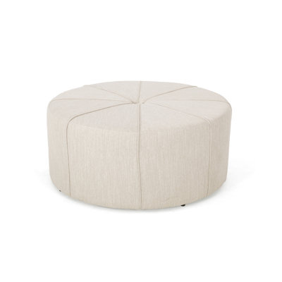 Create an accountThis upholstered ottoman is a versatile addition to your living room – a place to kick up your feet or a spare seat. Its drum silhouette fills out your space while adding a modern vibe that we love. A solid and engineered wood frame is wrapped in muted fabric that goes with just about any style or color palette. Pinwheel piping and a button tuft on top lends a tailored touch. Cotton padding provides just the right amount of support as it accommodates up to 300 lbs.