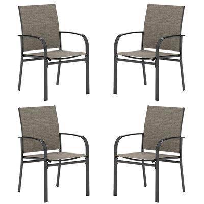 Create an accountThis classic 6-piece set of outdoor dining chairs adds a tasteful addition to your patio or garden dining space. Each chair features seats made from a PVC-coated polyester sling material that's both comfortable, supportive, and breezy. These chairs are designed to withstand the elements, resisting fading, UV rays all year round. The metal legs provide a stable base, and the chairs have a weight capacity of 250 lbs. Just right for outdoor gatherings, these chairs are a refined choice for your al fresco dining experience.