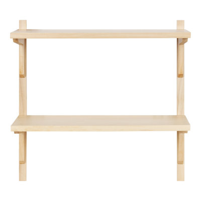 Create an accountThis tiered shelf brings a modern, minimalist look to your main bedroom or entryway. Crafted from solid poplar wood, it features two levels that provide a practical spot to display books or your favorite decorative accents. The open design keeps your walls feeling light and airy, while the natural material is designed with visible woodgrain for added depth. This single-piece unit serves as a functional foundation for organizing your essentials in any contemporary space.