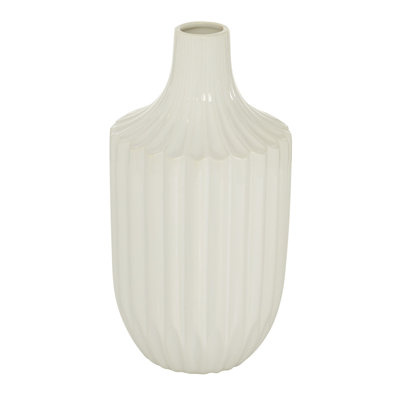 Create an accountUse as a flower holder on your coffee, console, and kitchen tables, or as a decorative piece on a book shelf or office shelf. Designed with felt or rubber stoppers at the base that prevent scratching furniture and table tops, as well as sliding around. This item ships in 1 carton. Suitable for indoor use only. This is a single white colored vase. Modern style. Vase has a 2 in mouth opening.