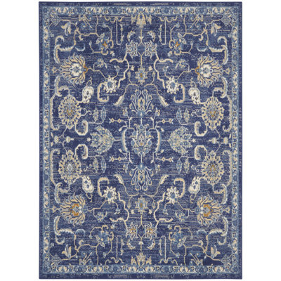 Create an accountWith finely detailed palmettes on an abrash blue field, this Grafix Collection rug by brings the elegance of Persian rug design to your home with a traditional all-over design in beige and gold. Easy-care fibers provide excellent durability and inviting texture for a touch of Old World flavor that's at home in any décor.