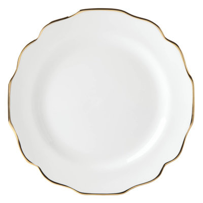 Create an accountRevolutionary microwave safe gold shimmers on the edges of the elegant Luxe 11" Bone China Dinner Plate. Each piece is crafted in bright white chip resistant China with scalloped trim on the dinner and accent plate. This delicate scallop detail is repeated on the mug handle. Microwave and dishwasher safe and this stylish dinnerware is perfect for both special occasions and every day.