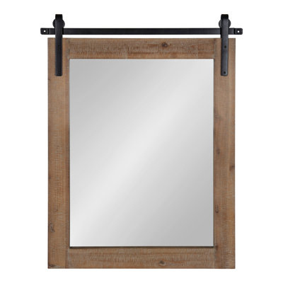 Create an accountInspired by traditional farmhouse décor, this wall mirror has a barn door-like appearance with a rustic, wood frame, and raw iron metal brackets securing it to your wall. This mirror is an excellent feature in any room thanks to its transitional style and convenient screw-in installation technique. It's easy to use as a living room or entryway accent, or as a bathroom mirror and vanity. The distressed look and finish of the frame add to its farmhouse-style charm and would look great in a kitchen, hallway, or dining room, too. Adding a mirror to any living space in your home opens it up and adds dimension by reflecting light sources across the room. This mirror comes fully assembled with no assembly required, mounting in seconds with all necessary hardware already included. Want to create a dynamic decor theme throughout your home?