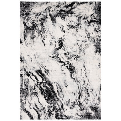 Create an accountThis modern area rug brings contemporary refinement to your living room or office. An abstract veined pattern showcases a marble-like look with streaks of black and ivory for a sleek, neutral foundation on your floor. Power-loomed from polypropylene, it features a medium 0.375" pile that's great for rolling out in high-traffic living rooms or dining spaces prone to occasional spills. Although it comes with a jute backing, we recommend pairing it with a rug pad to prevent shifting and sliding underfoot.