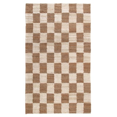 Create an accountRoll out a rustic, homey feel in your space with this area rug. Hand-loomed from jute, it shows off a checkered pattern of neutral hues that pair with almost any color scheme. The low pile height means it's easy to vacuum and won't get caught under the door – so it's functional for high-traffic areas like your entryway. Plus, it's stain-resistant, as well as safe to place on heated floors. We recommend adding a rug pad underneath to keep it from shifting and sliding over time.