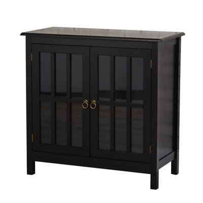 Create an accountThis accent cabinet offers a stylish solution to your storage needs, effortlessly blending functionality with a coastal vibe. Crafted from a mix of solid and engineered wood, it features a clean-lined rectangular silhouette with glass-pane doors, adding a touch of elegance to your space. Inside, you'll find two shelves, perfect for organizing books, dishes, or decor. The cabinet's brown metal hardware complements its versatile design, making it a seamless fit in any room. Plus, it rests on squared legs for a sturdy foundation.