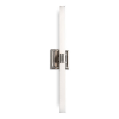 Create an accountA tubular length of the illuminated rod the Rona wall light is supported and clasped with a detailed cylindrical projection. The thick square outline of the attachment plate frames the lamp holder and echoes the refinement of the present architectural trim. Available as either a sconce or vanity and in several curated finishes.
