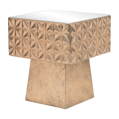 Create an accountModern and tribal, this side table is made with a powder-coated steel frame with a mirrored glass top. This piece will make a unique statement in any space, wild boho chic, a modern twist on industrial, or complete maximalism.