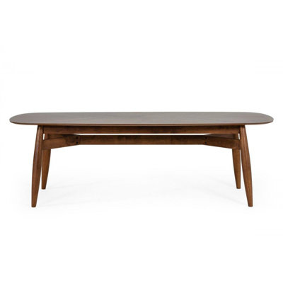 Create an accountEnjoy making memories around this gorgeous 95" walnut rounded rectangular solid wood top fixed dining table. This table features quality construction from a solid wood in a sleek monotone color scheme with walnut as the main color on both the top and the base. This dining table seats 8 people comfortably. This table is the sturdy, reliable and stylish answer to your dining room needs. The dining table is a symbol for togetherness, special meals, and conversation. This 95" walnut rectangular solid wood top fixed dining table is a must-have for your home. 30" H x 94.5" W x 39.5" D